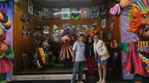 Con Juan y Lina estudiantes de la Universidad de Nariño, en el museo del Carnaval.